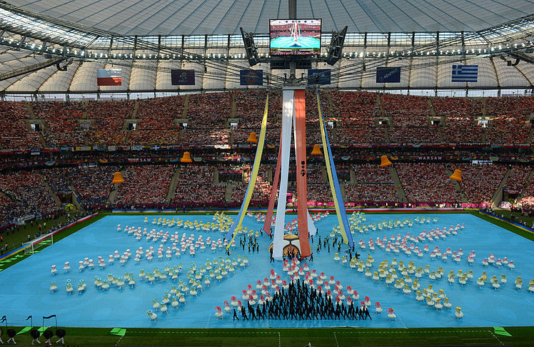 本屆歐洲杯的開(kāi)幕式沿襲了以往歷屆的簡(jiǎn)約風(fēng)格,全場(chǎng)約12分鐘。來(lái)自63個(gè)國(guó)家的800多名志愿者參與表演,一段舞蹈之后,球場(chǎng)中央的大型足球模型打開(kāi),來(lái)自匈牙利的鋼琴王子亞當(dāng)-喬爾吉登場(chǎng),演奏波蘭著名愛(ài)國(guó)音樂(lè)家肖邦的《離別曲》(E大調(diào)練習(xí)曲)。隨后意大利著名DJ卡馬托尼奇也出現(xiàn)在場(chǎng)內(nèi),和吉奧利 共同演繹了一首名為“世界的比賽”的作品。整個(gè)開(kāi)幕式演出融合了傳統(tǒng)和創(chuàng)新的理念,將體育和文化互相交融,著重宣揚(yáng)歐洲杯的核心價(jià)值理念——團(tuán)結(jié)、競(jìng)爭(zhēng)、熱情,電視衛(wèi)星現(xiàn)場(chǎng)轉(zhuǎn)播以及懸掛在賽場(chǎng)上放的的洲明科技LED顯示屏直播都讓觀眾朋友們“大飽眼福”。