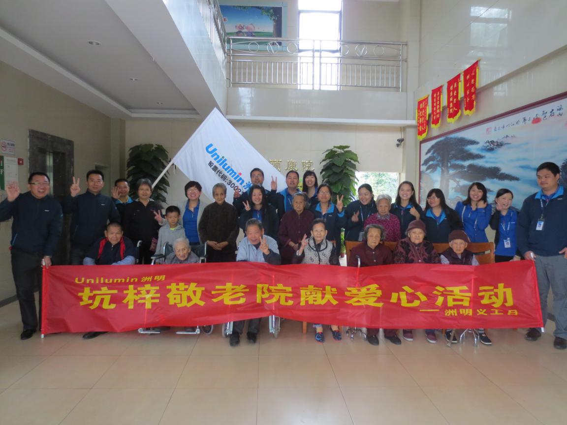 2014年11月8日,為感恩十年和回饋社會,洲明科技照明事業部通過坪山新區黨工委義工聯的聯系,組織坪山工廠照明事業部員工舉辦了“坑梓敬老院獻愛心”的義工活動,此次活動也是繼洲明科技與寶安區西鄉街道辦在西鄉敬老院主辦的“點亮未來,溫暖人生”主題公益活動之后的又一次關愛老年人群體的愛心活動。
