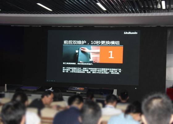 會上,主講人從市場需求、競爭環境、競品特點、新品發布四個方面,對戶內固定安裝LED顯示屏的行業發展環境、市場需求,以及相比競爭對手的差異化優勢進行了全面地分析。
