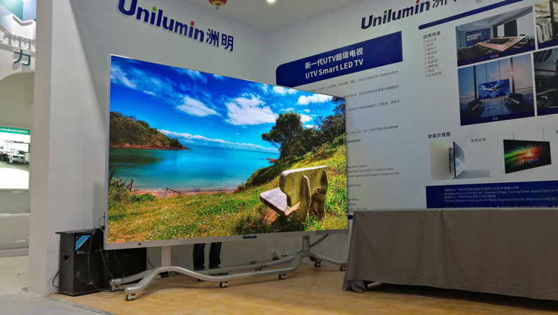 展會(huì)現(xiàn)場(chǎng),洲明科技也帶來(lái)了另一款尖端顯示產(chǎn)品——138吋LED超級(jí)電視。經(jīng)過(guò)全新升級(jí)的新一代UTV超級(jí)電視,在外觀上更加輕薄、美觀,在細(xì)節(jié)上更加別致、用心,在功能上更加靈活、便捷、人性化,是本屆展會(huì)上最受關(guān)注的焦點(diǎn)產(chǎn)品之一。1080P高清分辨率電視,采用模塊化設(shè)計(jì),積木式拼接,底部配有8個(gè)調(diào)節(jié)輪子,可360°隨意旋轉(zhuǎn),支架高度可調(diào)節(jié),支持掛墻安裝、吊裝、座裝等多種安裝方式,無(wú)論是大畫(huà)面的視覺(jué)享受,還是安裝、搬運(yùn)、移動(dòng)的靈活便捷,都完勝傳統(tǒng)液晶電視,是機(jī)場(chǎng)、別墅、高端會(huì)議室等高端應(yīng)用理想之選。