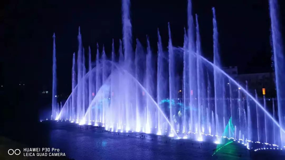 噴泉與燈光在音樂里跳動,