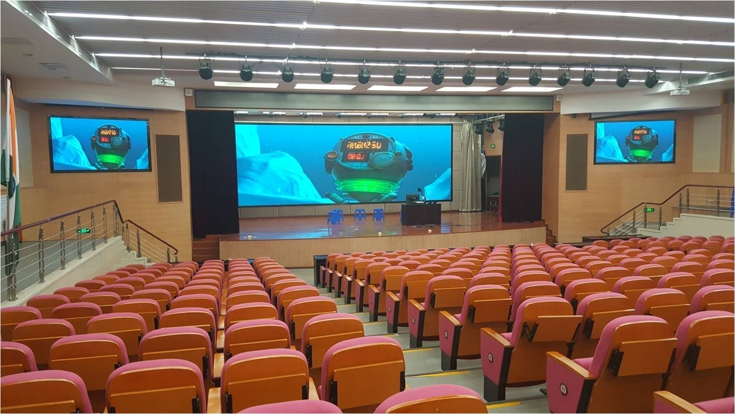 在2019年11月11日結束的“第十七屆全國小學信息技術與教學融合創新展示與培訓活動”上,洲明為廈門市雙十中學海滄附屬學校報告廳提供的80平米UTW小間距高清LED顯示屏,就以高清的畫質、豐富的色彩、細膩的細節表現,成功完成了研討課、模擬展示課、觀摩課、微課和智慧學習云課程等課程的創新展示,對“信息技術與教學融合”的活動主題進行了有力探索。