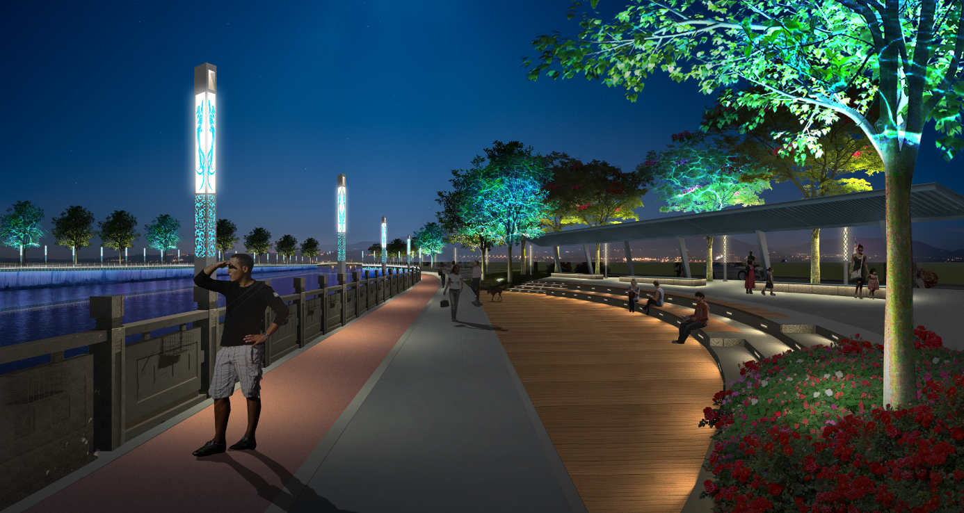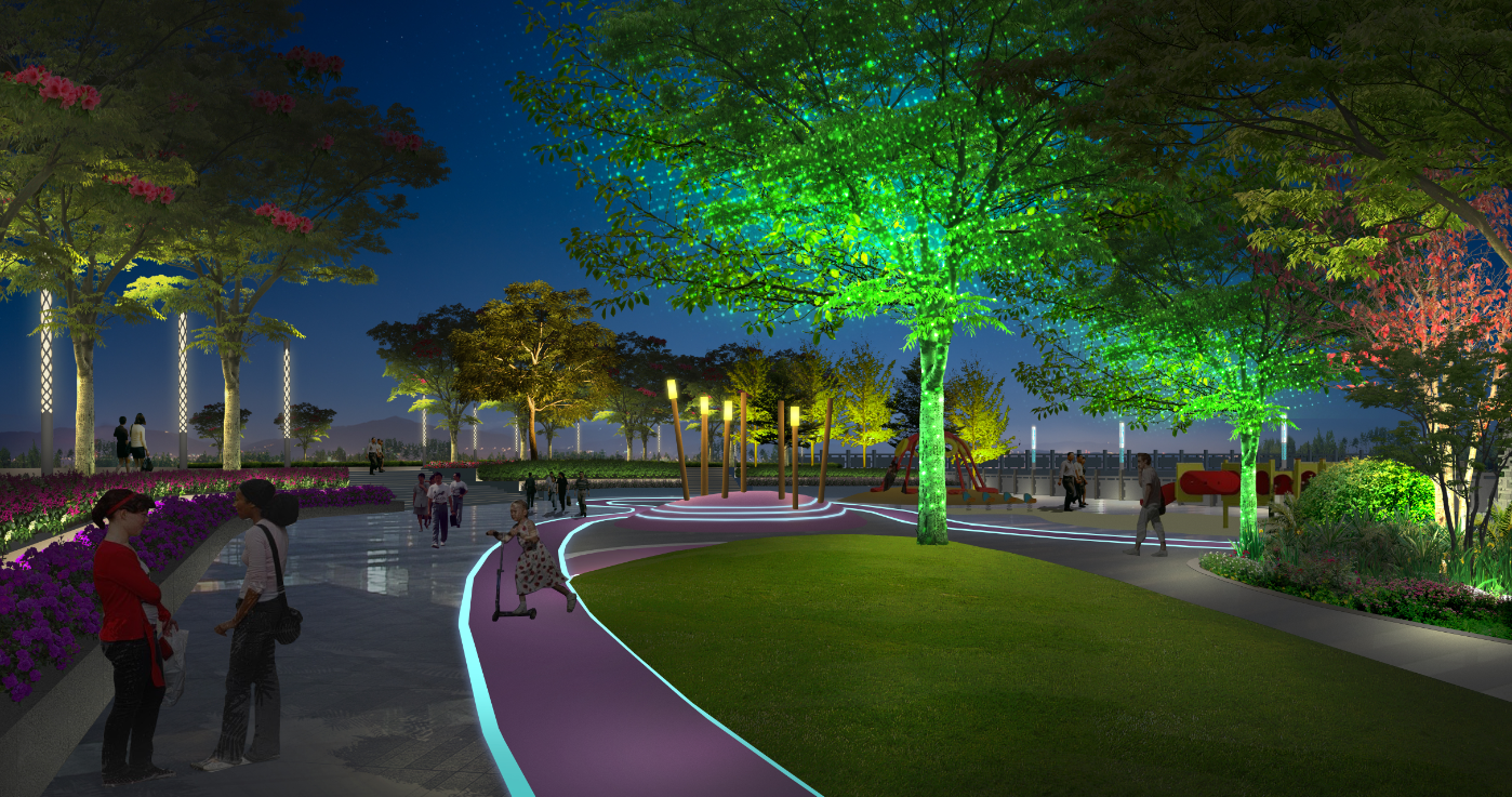 作為石馬河第二階段的主要景觀節點,洲明希望通過柔和的燈光、創意的設計,將沿河公園打造成市民休憩、游人觀賞的絕佳場所,為鳳崗的夜景再添濃墨重彩的一筆。