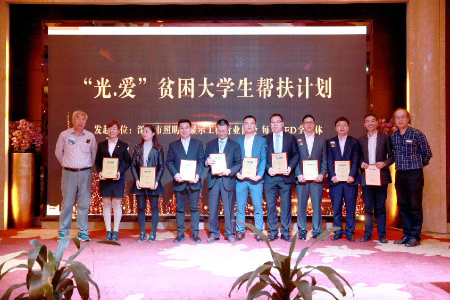 深圳市照明與顯示工程行業協會黨支部發起的“光·愛”貧困大學生計劃中,廣東洲明總經理王榮禮先生用行動踐行愛心企業家的使命,將以個人名義對貧困大學生進行捐贈,榮獲幫扶貧困大學生計劃貢獻獎。