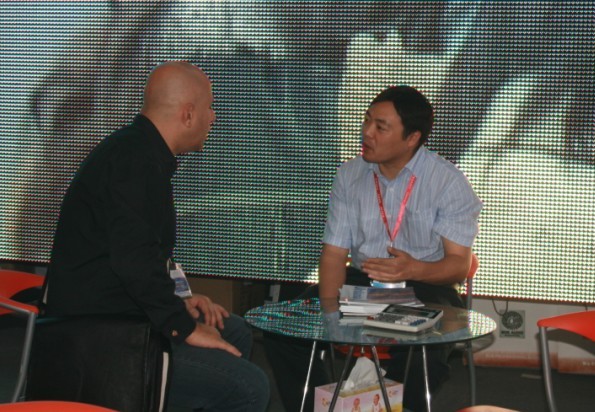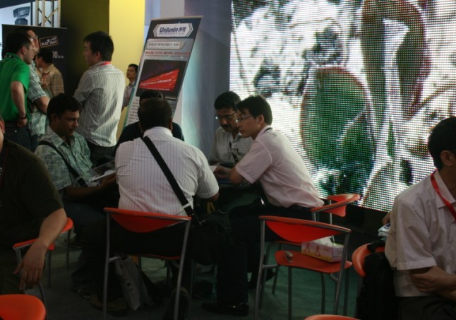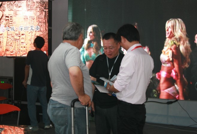 5月20日,展會乍一開始,洲明科技展示的各色全彩顯示屏就深深吸引了人們的眼球,令不少觀眾駐足觀看,流連忘返,一時間洲明展臺前人頭攢動,負責接待的工作人員更是應接不暇。展會現(xiàn)場,P6、P4兩種規(guī)格的顯示屏猶具吸引力,成功吸引部分客戶現(xiàn)場訂下意向訂單,并決定在展會結束后即到公司來考察。
